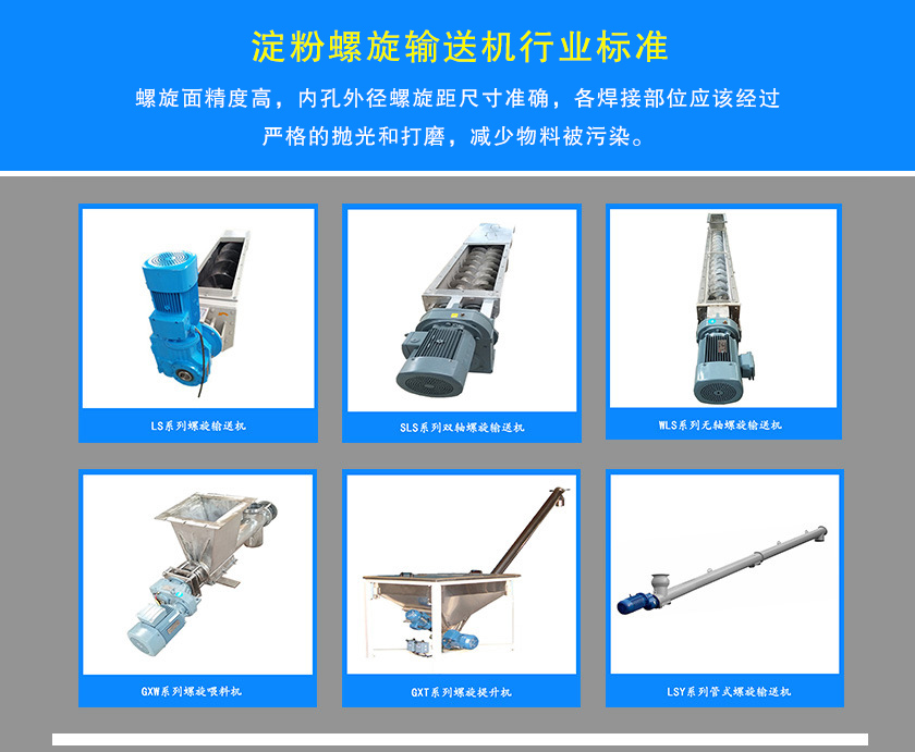 淀粉螺旋輸送機是食品行業(yè)專用的一種輸送粉末或顆粒的螺旋輸送機,它采用不銹鋼材質(zhì)制作而成,采用氬弧焊焊接,即在普通電弧焊的基礎(chǔ)上,利用氬氣對金屬焊材的保護,使焊材不能與空氣中的氧氣接觸,從而防止焊材的氧化,不容易銹蝕,所以在淀粉輸送過程中不會有污染物料的現(xiàn)象發(fā)生,符合食品行業(yè)高標(biāo)準(zhǔn)的衛(wèi)生要求。