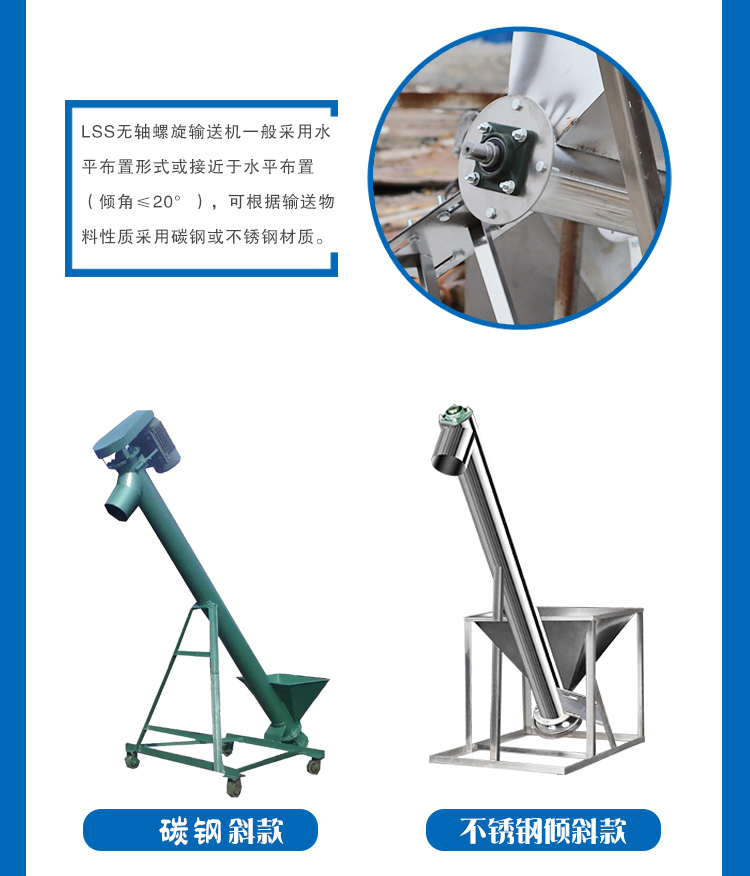 1、LSS無軸螺旋輸送機(jī)采用無中心軸設(shè)計(jì),抗纏繞性強(qiáng)。