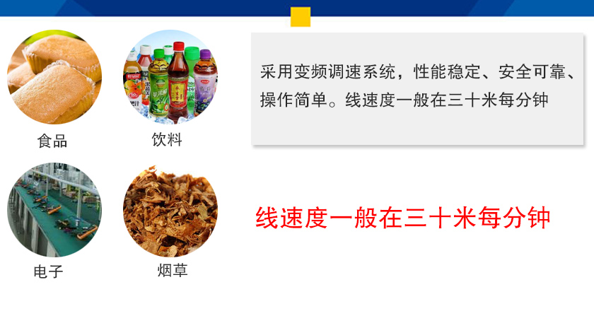 廣泛應(yīng)用在食品、飲料、電子、煙草等行業(yè),我們可以選用較小直徑的滾筒,使轉(zhuǎn)角連接更加方便,解決過(guò)渡問題。本設(shè)備適用于各種流水作業(yè)的生產(chǎn)廠家,中小型物品的物流輸送,動(dòng)力系統(tǒng)采用變頻調(diào)速系統(tǒng),性能穩(wěn)定、安全可靠、操作簡(jiǎn)單。線速度一般在30米/分鐘。