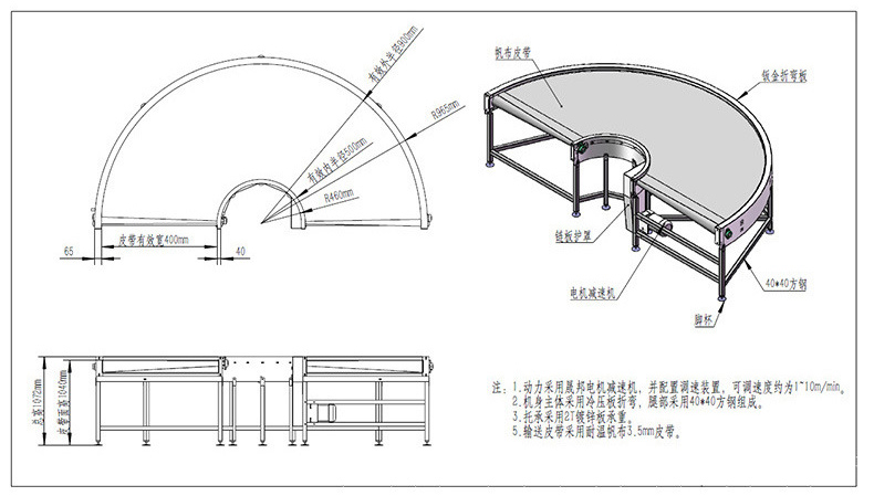 1、相較普通輸送機(jī)增加轉(zhuǎn)彎功能,可滿足各種輸送工藝要求。