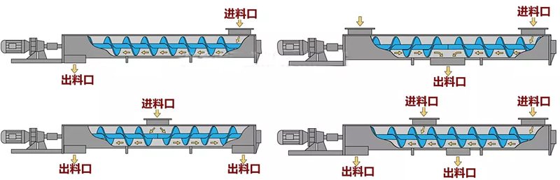 水平螺旋輸送機有多種進料和出料方式,具體的選擇取決于物料的特性、工藝要求以及設備布局等因素。以下是常見的進料和出料方式: