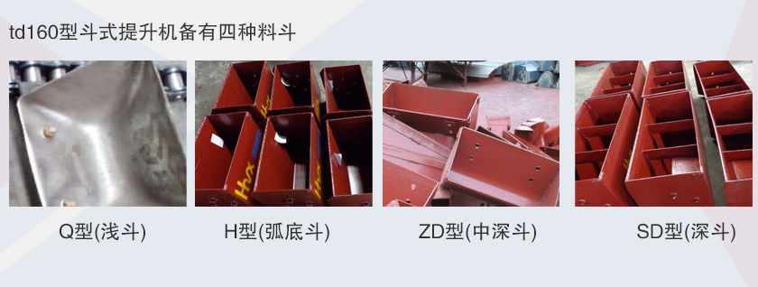 td160斗式提升機(jī)斗寬為160mm,斗速為1.4米/秒,是一種小型td斗式提升機(jī),可以垂直輸送粉狀、顆粒狀及小塊狀的磨琢性散裝物料,td160型斗式提升機(jī)備有四種料斗Q型(淺斗)、H型(弧底斗)、ZD型(中深斗)SD型(深斗)。