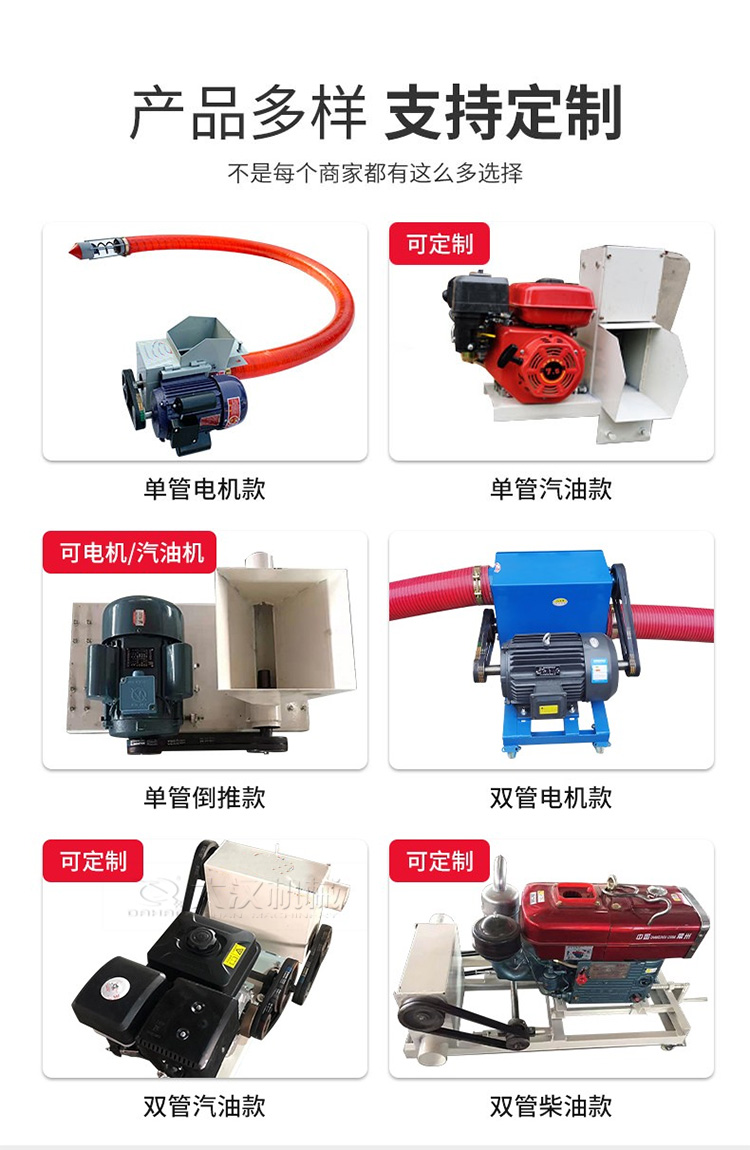 一般情況下,車載吸糧機采用的是220V電壓,單相異步電機,使用廣泛,安全可靠,不易產生事故,也可以選擇380V電壓,另外在沒有電源的情況下,也可以選擇汽油或柴油機。