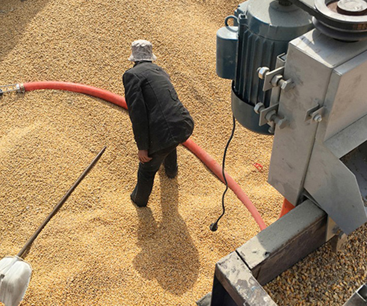 車載吸糧機可根據現場工作量要求采用單管和雙管,雙管設計的可在地面來回推動,進糧側和出糧側均輕便自如。糧食點卸、倉裝,宜采用雙管。單管設計的車載吸糧機電機在出糧側,體積稍大,適合在不經常換位的固定場所使用。