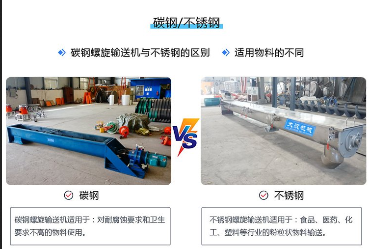 1、不同材質 以上是不同型號下的無軸螺旋輸送機的價格范圍,選擇不同材質,不同設計也會導致無軸螺旋輸送機價格不同:
