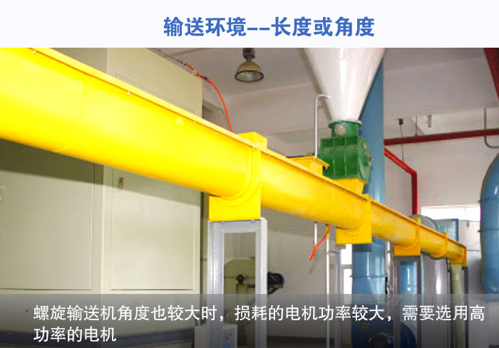 長度超過15米,管壁厚度必須在10-15mm;角度大于30度,選用高功率電機。輸送環境決定了螺旋輸送機的長度和連接方式,輸送長度較大時,要求螺旋輸送機管壁的厚度必須要在10-15mm,否則螺旋輸送機容易斷裂。螺旋輸送機角度也較大時,損耗的電機功率較大,需要選用高功率的電機。