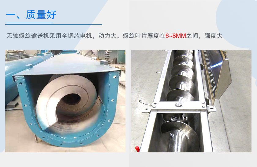 無軸螺旋輸送機(jī)采用無軸螺旋葉片,是輸送粘性高、易于纏繞的物料時(shí)輸送設(shè)備,無軸螺旋輸送機(jī)廠家有很多,哪家生產(chǎn)的無軸螺旋輸送機(jī)質(zhì)量好呢?
